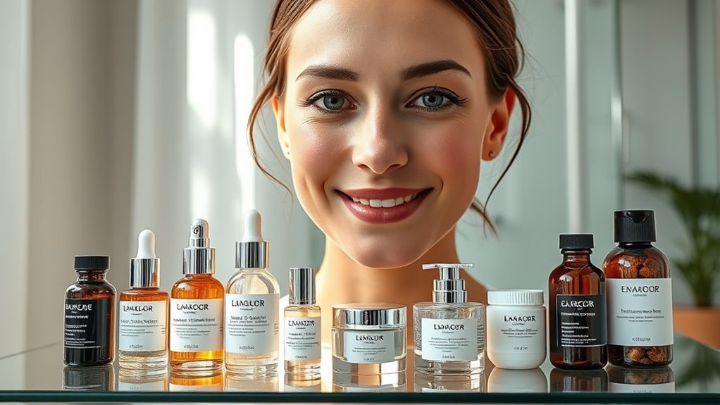 Many anti-aging claims are myths; nothing can fully stop or reverse natural aging. Topical creams with retinoids, peptides, and antioxidants support skin health but won’t erase existing lines or make overnight miracles happen. Consistent sun protection, good nutrition, hydration, and healthy habits matter most for lasting results. By understanding what really works, you can make smarter choices. Keep exploring to discover proven strategies that help you age gracefully and maintain your youthful look longer.