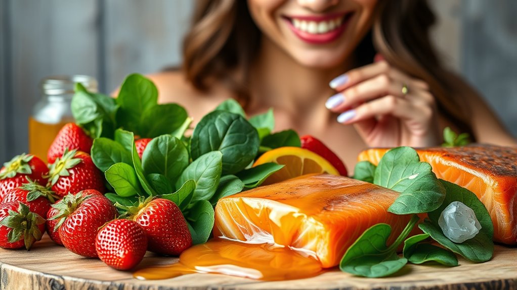 By paying attention to your diet, you can markedly improve your hair, skin, and nails. Did you know that deficiencies in nutrients like biotin and vitamin E can cause hair thinning and brittle nails? Eating a balanced diet rich in fruits, vegetables, and lean proteins supports your body’s natural beauty. Remember, small dietary changes can lead to noticeable improvements, helping you look and feel your best every day.