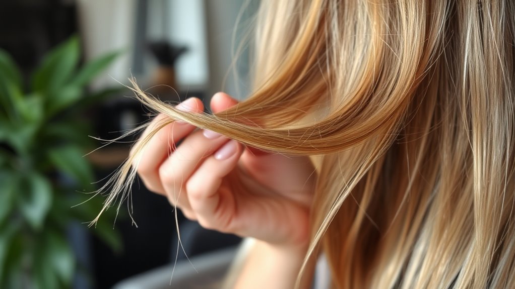 Um Spliss zwischen Friseurbesuchen zu vermeiden, halten Sie Ihre Haare gesund, indem Sie alle 6-8 Wochen einen Schnitt machen und scharfe Scheren verwenden. Tragen Sie pflegende Öle wie Kokos- oder Arganöl auf und verwenden Sie Hitzeschutzsprays vor dem Stylen. Integrieren Sie regelmäßig feuchtigkeitsspendende Masken, um Ihre Strähnen zu stärken, und vermeiden Sie es, beim Bürsten zu ziehen oder zu zerren. Das Begrenzen von Hitzestyling und die Konzentration auf sanfte Pflege können einen großen Unterschied machen. Wenn Sie weitere Tipps wünschen, um Ihr Haar glatt und schadensfrei zu halten, lesen Sie weiter.