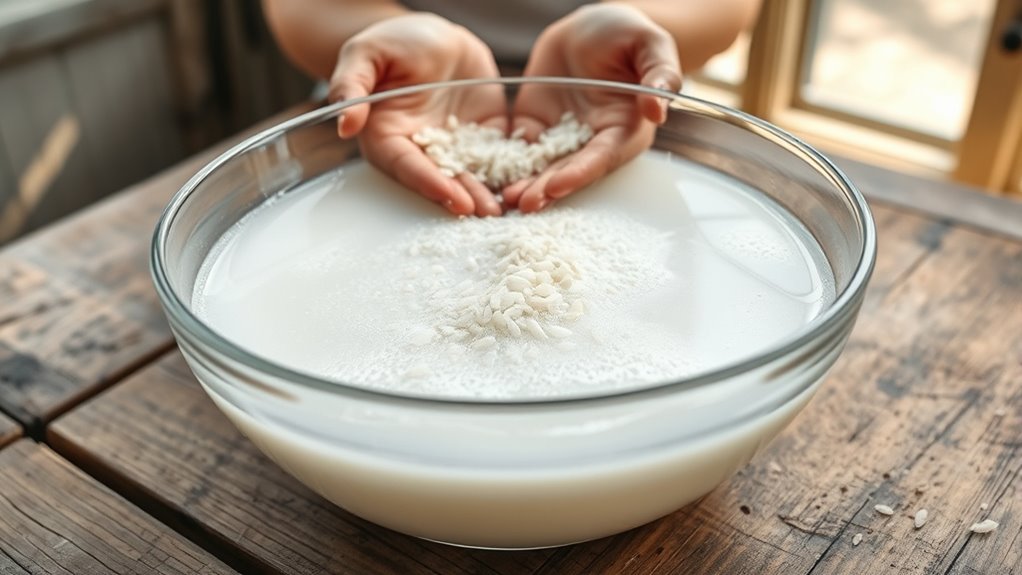 You should apply rice water 2-3 times a week for ideal usage. Imagine the gentle rinse calming your scalp, like a revitalizing breeze on a warm day. Consistent application helps improve hair strength and shine without overdoing it. Stick to this frequency, and you’ll notice better results over time. Always observe how your scalp responds and adjust the application frequency if needed to avoid any irritation.