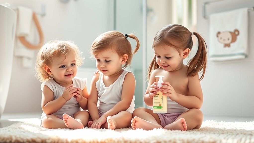 Think of your child’s skin as a garden that needs gentle tending. You should encourage face cleansing twice daily—morning and night—to remove dirt and oil. Body washing can be done daily or every other day, depending on activity levels and skin sensitivity. Using mild, kid-friendly products, you help keep their skin fresh and healthy, just like watering a garden guarantees vibrant blooms.