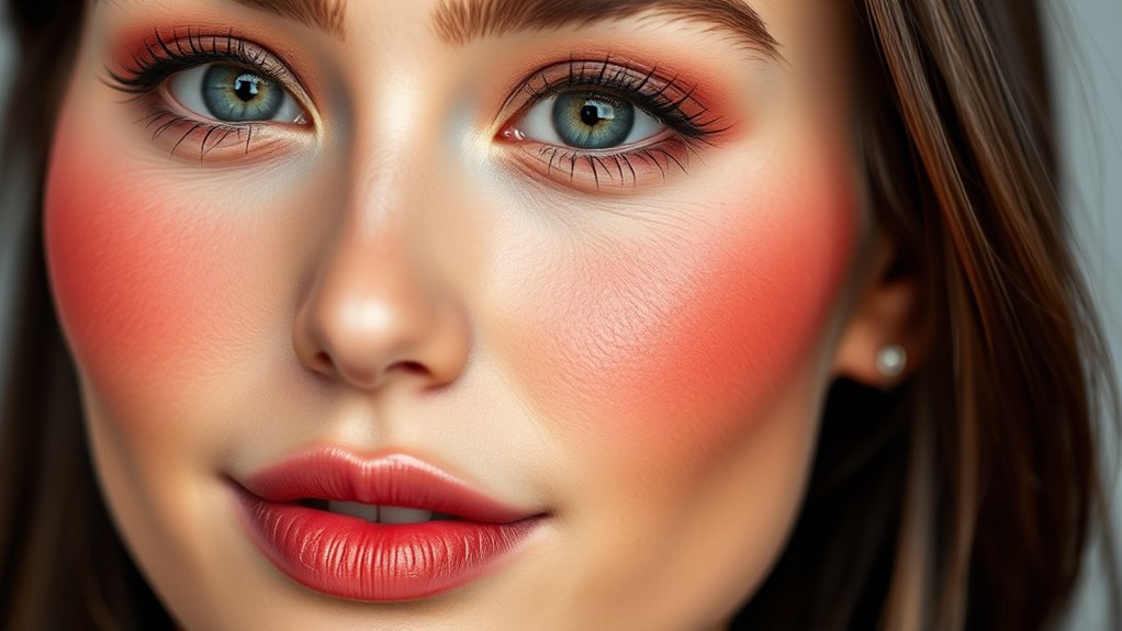 You’re best suited for blush draping if you have fair to medium skin tones, as they tend to show the sculpted effect beautifully. Choose a blush with a smooth, blendable texture for easy application and natural results. If you have darker skin tones, opt for richer, more pigmented blushes to create depth. Ultimately, the right blush texture and shade enhance your skin tone, making your features stand out effortlessly.
