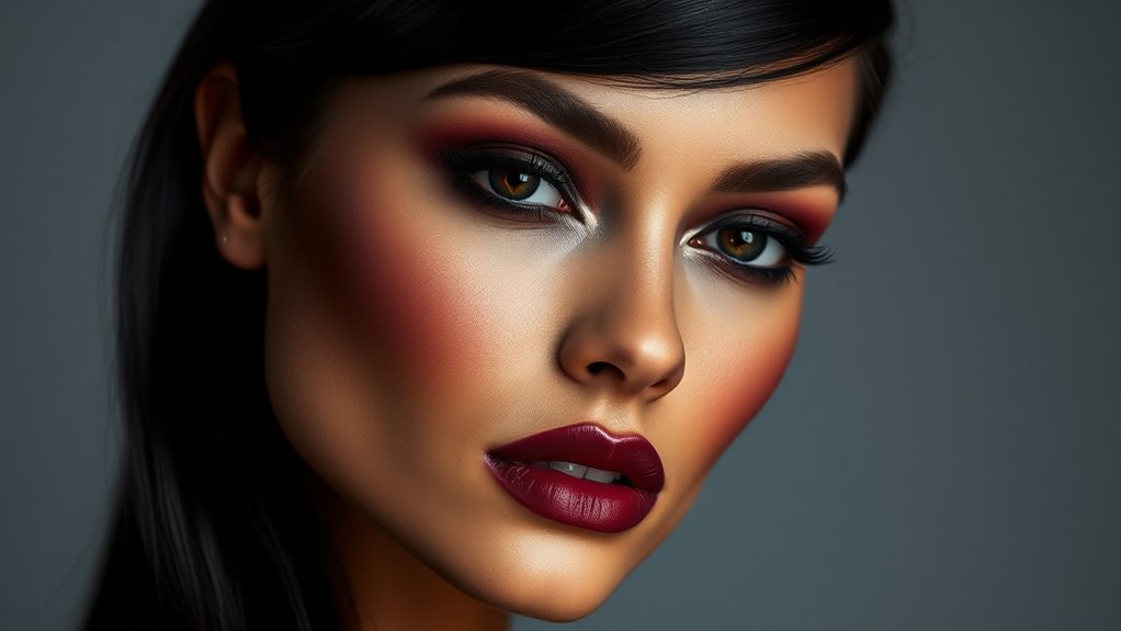 Um monochromatisches Make-up zu tragen, ohne flach auszusehen, konzentrieren Sie sich darauf, harmonische Farbtöne auszuwählen, die Ihren Hautton und die gewünschte Stimmung ergänzen. Verblenden Sie die Farben nahtlos mit sauberen Pinseln, beginnend mit helleren Tönen und allmählich dunklere Schattierungen hinzufügend, um Tiefe zu schaffen. Integrieren Sie subtile Variationen für Dimensionen, wobei Sie Highlights und Konturen betonen. Gute Beleuchtung und saubere Werkzeuge stellen sicher, dass Ihr Look gepflegt und stimmig bleibt. Bleiben Sie bei uns für Experten-Tipps, um diesen anspruchsvollen Stil mühelos zu meistern.