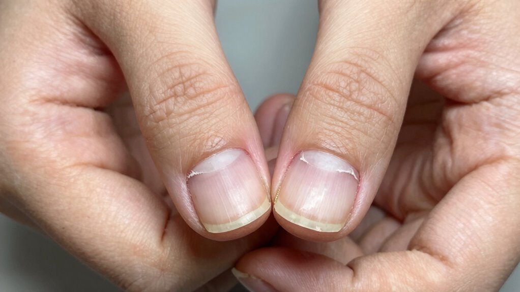 If your cuticles show signs of damage or are unhealthy, you might notice redness, swelling, or inflammation around your nails. You could also see peeling, cracking, or thickened cuticles, which indicate damage. Unhealthy signs include pain when you touch or push back your cuticles and a tendency for them to bleed easily. These issues suggest your cuticles need gentle care to promote healthy nail growth and prevent further damage.