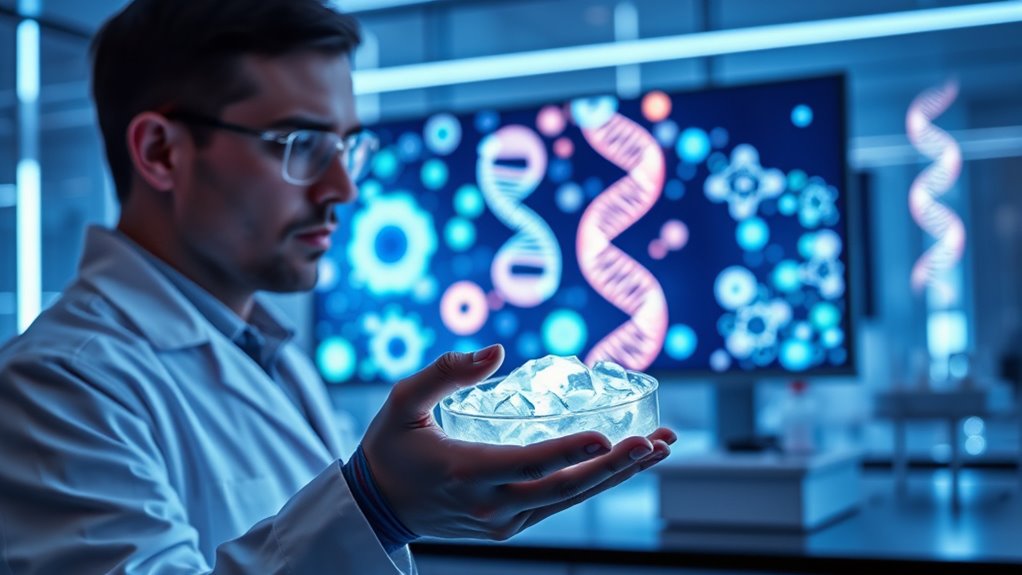 Biotech skincare is blending science with natural ingredients to create more effective, personalized, and sustainable products. By harnessing synthetic biology and microbiome therapy, you can benefit from ingredients engineered for your skin’s unique needs. This innovation reduces reliance on traditional chemicals and promotes healthier skin. As technology advances, products become safer, more transparent, and tailored to your lifestyle. Keep exploring to discover how biotech is truly revolutionizing your skincare experience.