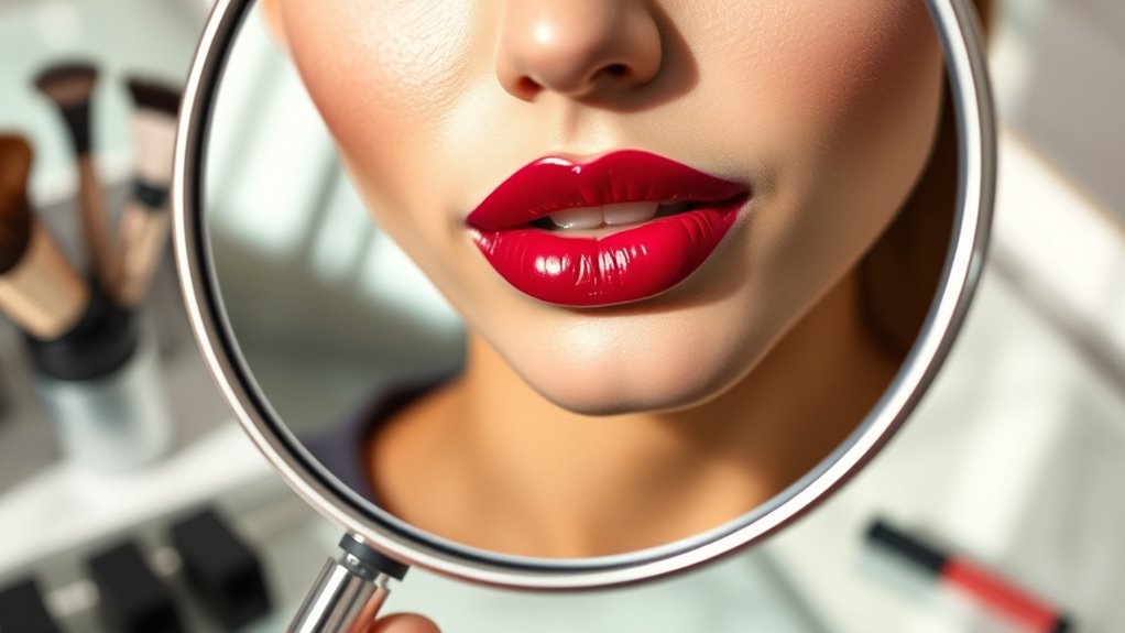 Since skin compatibility is essential for comfortable wear, I always look for liquid lipsticks with hydrating ingredients like hyaluronic acid, jojoba oil, or Vitamin E. These help maintain moisture and prevent lips from feeling dry or flaky. I also check labels for hypoallergenic or dermatologist-tested claims, especially if I have sensitive skin. It’s best to avoid formulas with drying alcohols or harsh chemicals, as they can strip lipids and cause irritation. Before trying a new product, I patch-test on a small area to check for adverse reactions. I prefer non-drying liquid lipsticks with a creamy or silky texture because they stick well without compromising comfort or skin health. This way, I ensure my lips stay comfortable and healthy all day.