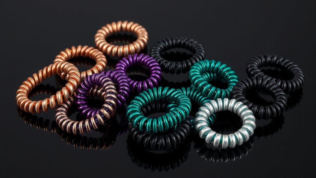 Did you know that 75% of women experience hair breakage from traditional ties? Spiral hair ties typically don’t leave marks or creases because they distribute pressure evenly. I’ve found they’re gentle on my hair, preventing those annoying dents that come with regular elastics. If you want to avoid creases and damage, I highly recommend trying spiral hair ties—they’re stylish, gentle, and keep your hair looking flawless!